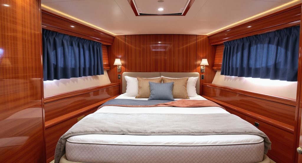 Dormez comme à la maison avec nos matelas de cabine de bateau sur mesure. Conçus avec des mousses marines de qualité (haute résilience, mémoire de forme, latex), nos couchages assurent confort, durabilité et hygiène. Chaque matelas sur mesure pour yacht est protégé par des tissus anti-humidité et des coutils respirants pour éviter la condensation à bord. Nous réalisons également des sur-matelas et alèses imperméables adaptés aux cabines d’équipage comme aux couchages invités. Faites appel à notre savoir-faire pour un matelas bateau sur mesure.